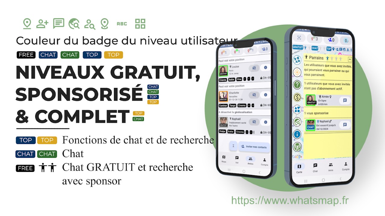 Avec WhatsMap, vous pouvez utiliser l'application totalement GRATUITE si les amis que vous invitez s'abonnent. Votre accès sera gratuit tant que deux de vos amis seront abonnés. N'attendez plus. Si vous avez dix amis, au moins deux s'abonneront. N'est-ce pas ?Des de casa, l'oficina o el bar